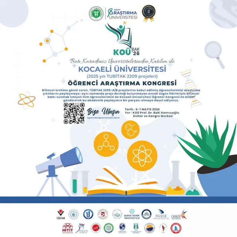 Kocaeli Üniversitesi ev sahipliğinde ve Batı Karadeniz Üniversiteler Birliği paydaşlığında, 6-7 Mayıs 2026 tarihlerinde Kocaeli Üniversitesi yerleşkesinde düzenleneceği "Öğrenci Araştırma Kongresi"ne katılım sağlayacak öğrencilerin;